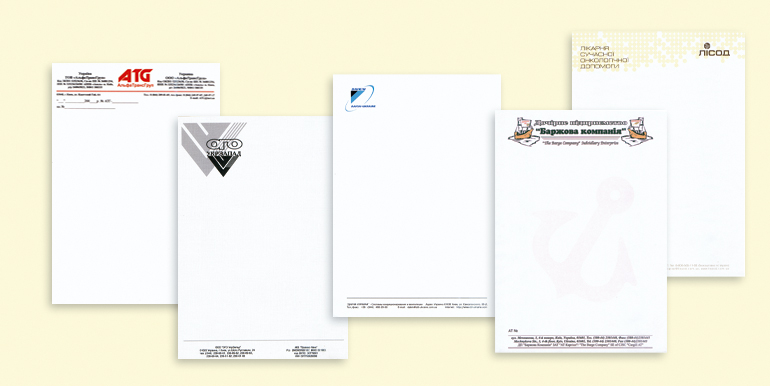 У фірмовому бланку розміщується логотип компанії, банківські реквізити, номери свідоцтва, контактна інформація (адреса, телефони, e-mail, сайт).