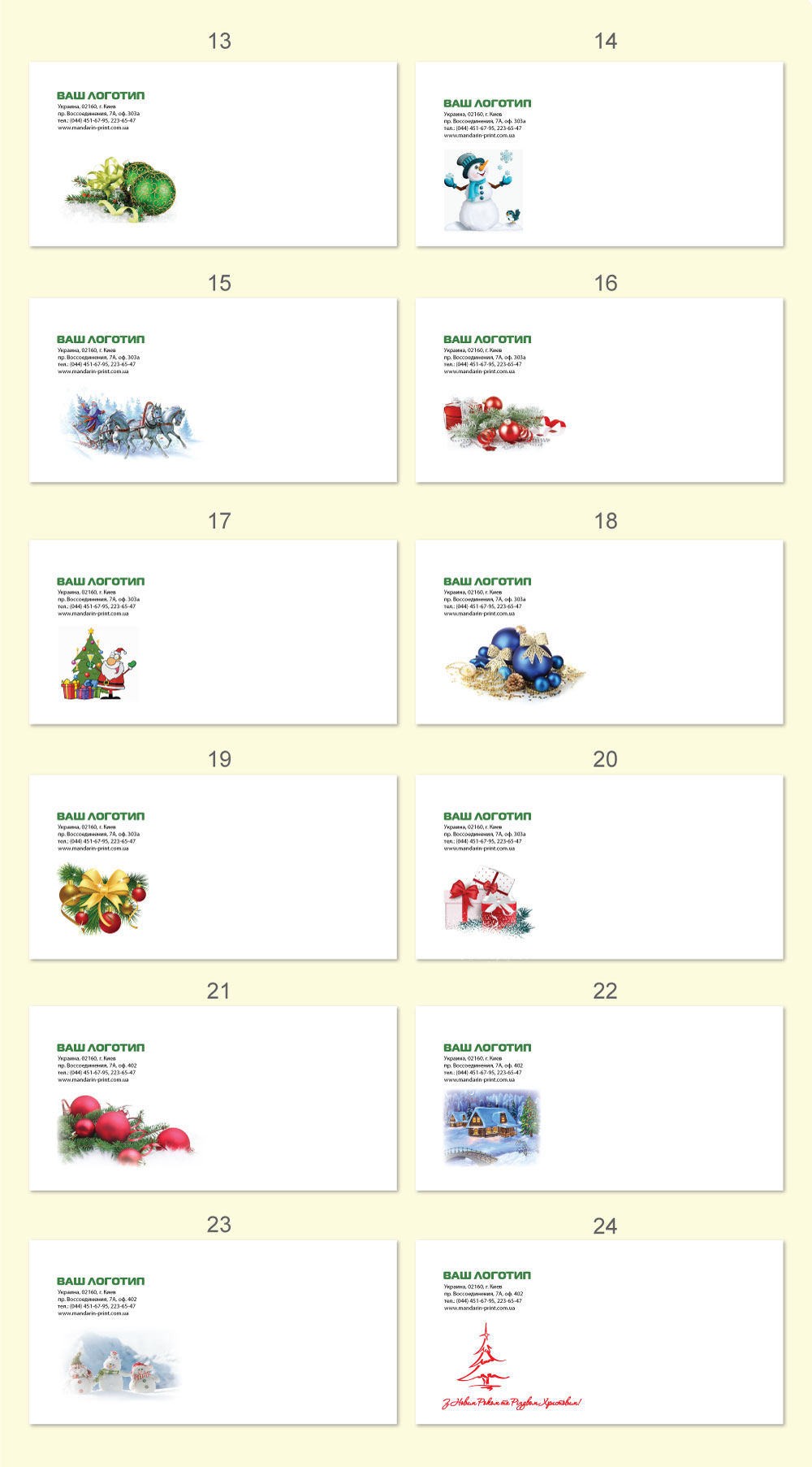 Вартість друку конвертів з логотипом та новорічною тематикою.